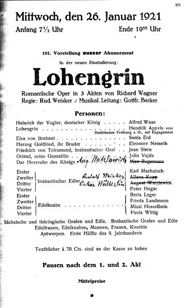 Op 1 april 1923 zong hij bij de Nationale Opera de titelrol in ‘Lohengrin’: