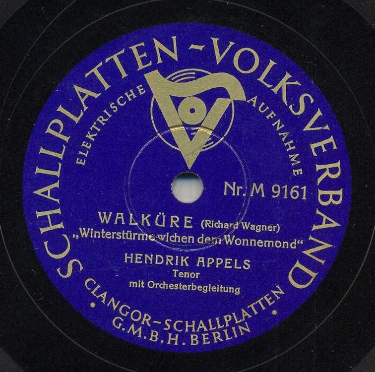 Ook in maart 1930 was Appels in Berlijn voor opnamesessies van grammofoonplaten. Voor label Tri Ergon nam hij “Ein Schwert verhiess mir der Vater”, “Winterstürme wichen dem Wonnemond” en “Siegmund heiß ich” uit ‘Die Walküre’ en “All macht’ger Vater” uit ‘Rienzi’ van Wagner op. In oktober 1930 werd de film ‘Brand in der Oper’ van regisseur Carl Froelich uitgebracht, waarin Hendrik Appels kort te zien en te horen is.²° De film werd opgenomen in het Theater am Nollendorfplatz in Berlijn en Appels is in de tiende minuut te horen in een fragment uit de tweede akte van ‘Tannhäuser’. In november 1930 nam hij in Berlijn voor label het label Tri Ergon nog “Scherzet immer” en “Jetzt spielen? … Hüll dich in Tand nur” uit ‘Pagliacci’, “Selig sind, die Verfolgung leiden” uit ‘Der Evangelimann’ van Kienzl en opnieuw “All mächt’ger Vater” uit ‘Rienzi’ op.