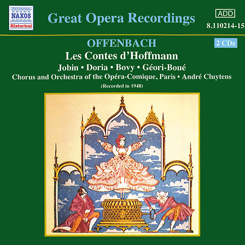 Niet de grootste stemmen ter wereld, maar wel de belangrijkste zangers van het repertoire van de Opéra-Comique rond de Tweede Wereldoorlog werden geëngageerd. En dat komt vooral tot uiting in de theatrale atmosfeer. De Canadese tenor Raoul Jobin (1906-1974) vertolkt Hoffmann, die verliefd wordt op de onbereikbare dames Olympia (tweede akte), Giulietta (derde akte) en Antonia (vierde akte). Jobin heeft een heerlijke huig “r”, een lekker brede hoogte en goede Draufgängertum als de jeugdig dichter. De befaamde operettezangeres Fanély Revoil (1906-1999) trad in de jaren veertig veelvuldig op in de Opéra-Comique en geeft hier de beste vertolking van Hoffmanns metgezel Nicklausse op CD. Haar vioolaria “C’est l’amour vainqueur” is helaas zoals zo vaak geschrapt.
