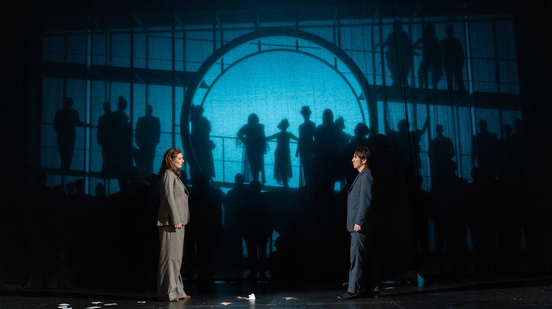 Maar de keuze van de nieuwe productie in Oldenburg vervult niet alle wensen. Regisseuse Angela Denoke (1961) – de Duitse sopraan die in 2021 haar regiedebuut maakte en met ‘Les Contes d’Hoffmann’ alweer haar zevende productie presenteert – heeft de tweede scène van de eerste akte geschrapt, waardoor de scène in Luthers herberg niet sfeervol én Lindrofs concurrentie met Hoffmann niet zeer duidelijk is. Ook is het intro van de tweede akte weggelaten waardoor de uitleg van uitvinder Spalanzani over zijn contact met zijn concurrent Coppélius niet helder is. En zo zijn er meer problemen door coupures in deze enscenering. Het toneelbeeld is donker, zwart, somber en vrij onveranderlijk met een cirkel in de achterwand en een gedraaide showtrap voor de Olympia-akte en de Giulietta-akte. Ook daarin komt een afgetekend verhaal niet naar voren.