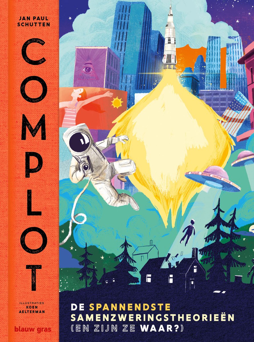 Kinderboekenschrijver Jan Paul Schutten (1970) behandelt in zijn boek ‘Complot; de spannendste samenzweringstheorieën (en zijn ze waar?)’ enkele van deze complottheorieën. Acht daarvan bespreekt hij in dossiervorm, zoals “klimaatverandering”, “wereldheerschappij van de elite” en “Covid-19”.