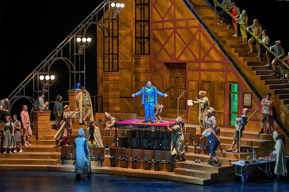‘Die Meistersinger von Nürnberg’ (1868, München) van Richard Wagner (1813-1883) heeft als ondertitel “Satyrspiel”. Satire was dan ook wat verwacht werd van de Duitse musicalspecialist Matthias Davids (1962) die dit jaar de opera voor de Bayreuther Festspiele regisseerde.